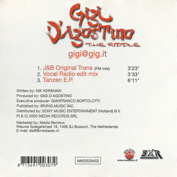 Luigino Celestino di Agostino also know as Italian Gigi D'Agostino released many records that featured his own partial cover of Nik Kershaw's "The Riddle".