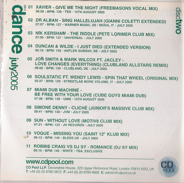 The Club Mix was also released as track 5 on the 2005 DJ Only Xtra DJO 78X and as track 3 on disc 2 of the 2005 Dance July 2005 various artists CD collections.